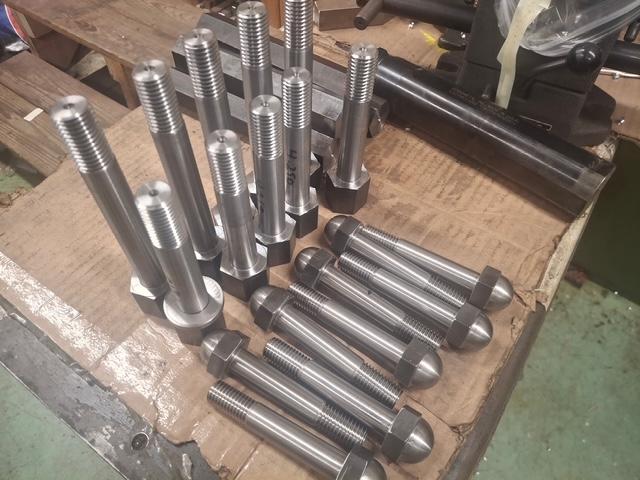 Quentin Bethune brought up bolts he fabricated for the valve gear. He formed the acorn heads and threads on his home shop CNC lathe. Earl Leavitt will turn the final diameter to achieve a fitted joint once the mating parts have been fabricated.
