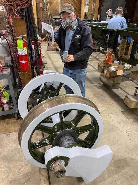 There are a few components left to finish – notably one driving wheelset. We plan to coat these items before our January work session, when we plan to apply the second, and final, color coat.