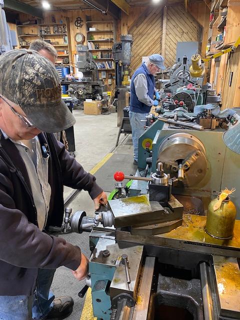 On Thursday morning Quentin was turning some threaded rod for our Coach 9 buddies. Earl was turning more parts for the tumbling shaft counterbalance spring assembly.