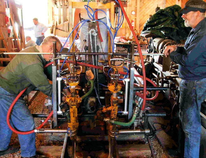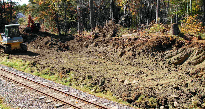 Here's a big shout-out to everyone who worked over the past weekend. In spite of a number of nearly-last-minute obstacles, a crew prepared rails for Saturday's adventures in track building, many people helped unloaded gravel and ballast in somewhat trying conditions (You try keeping your balance on a 60-degree slope while shoveling material off a flatcar -- not for the faint of heart!), and folks who worked Big Joe Sunday and Monday. As has been noted elsewhere, 400 feet of track placed in service and the track laid on Saturday is covered with ballast and ready for surfacing, either later this fall or next spring.