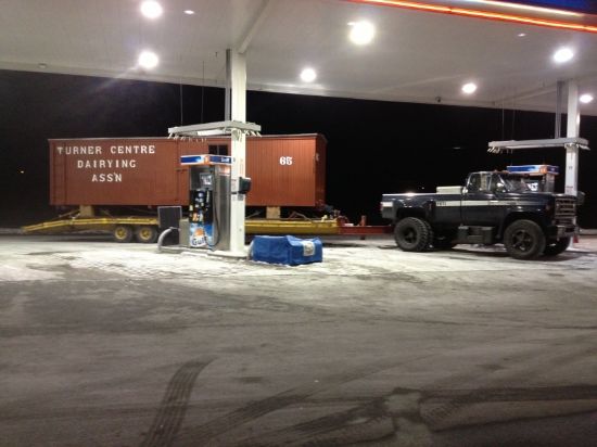 Car 65 was set out at the Creamery Pier in Wiscasset this morning.  The next steps will be to re-install the ramp from the pier, re-install the glass in the ice bin end and set up the waterfront display module in the other end.  The car should be open to the public sometime next month.
