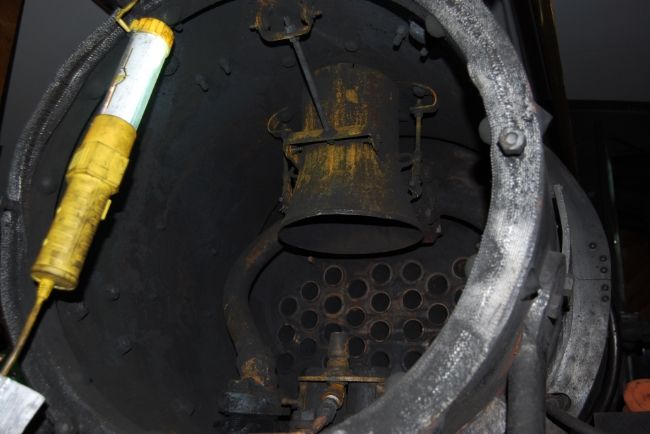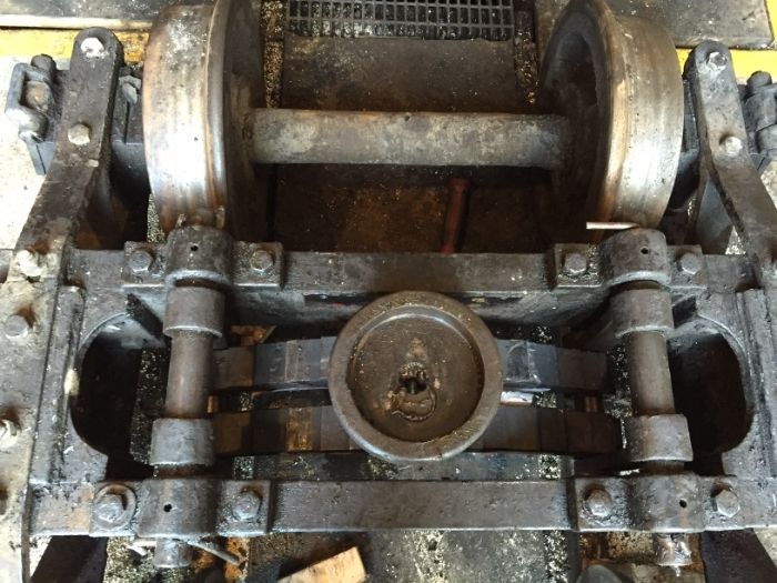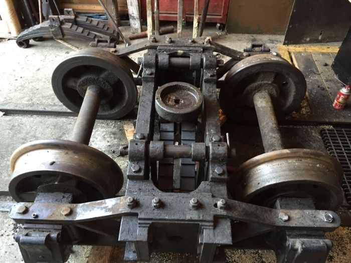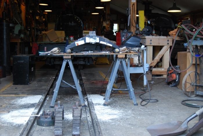 Despite lack of a spreading chestnut tree, there was activity today at the Museum’s smithy near the door to the Bay 4 machine shop. The task was to lengthen the swing links on the rear truck of engine No. 10. I believe--please correct me if I’m wrong—that the lengthening is part of a fix Jason doped out to compensate for the unwanted elevation of No. 10’s hind end caused by recently received new leaf springs for the rear truck. (The springs are shown in picture No. 1 of Brendan’s April 17th post.)